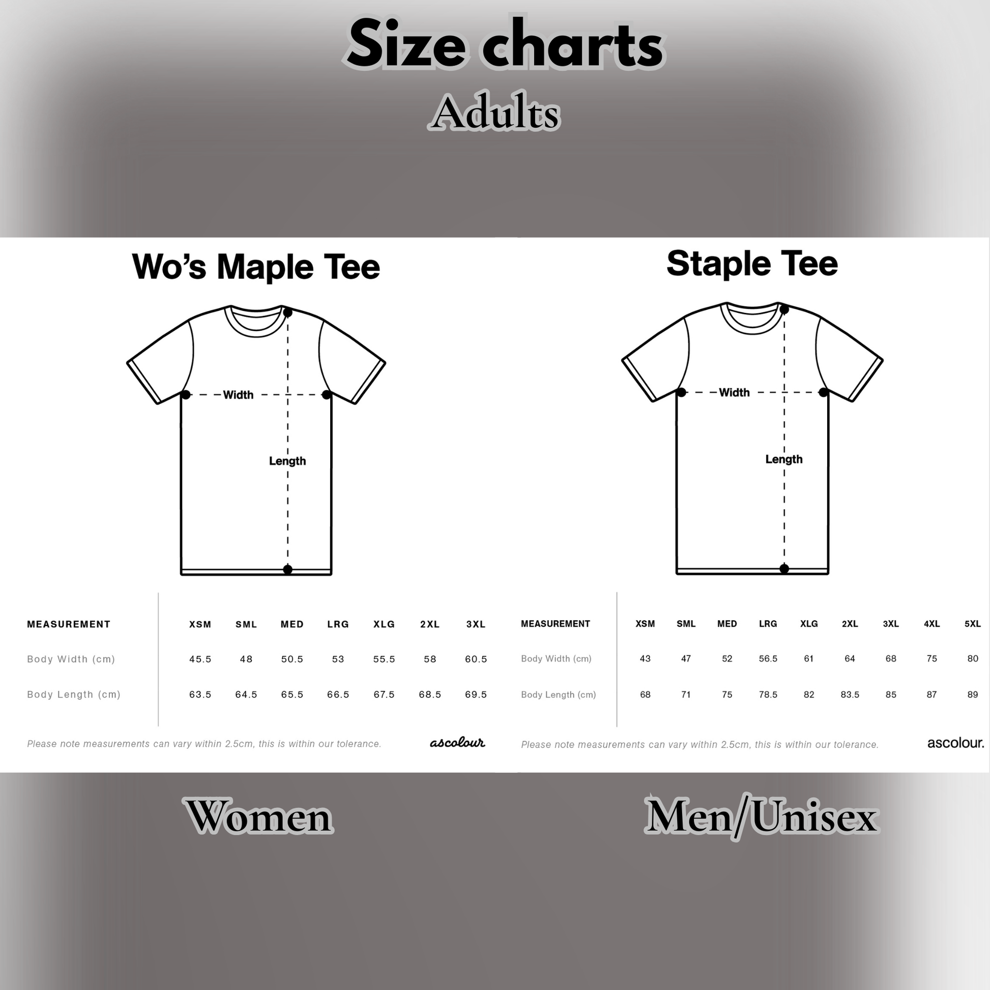 Size & Colour Guide 📏