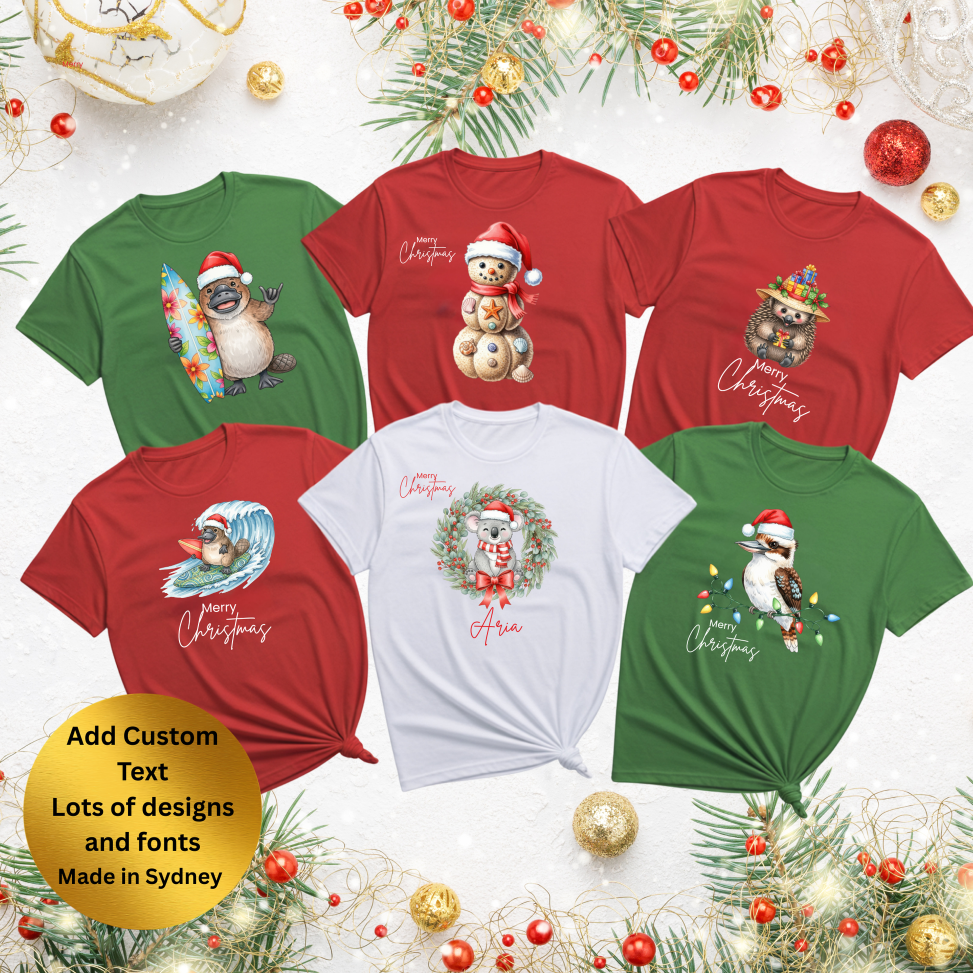 Personalise Australian theme Christmas family matching T-shirts