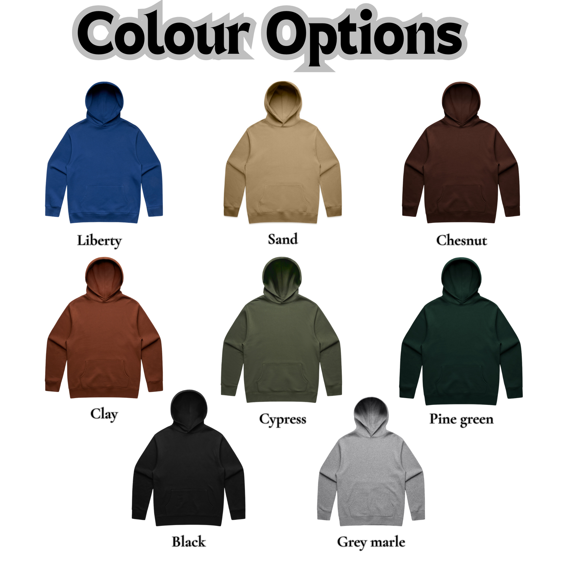 Pre-shrunk to minimise shrinkage, pullover hood, drop shoulder, kangaroo pocket, self-fabric lined hood, no draw-cord, sleeve cuff ribbing