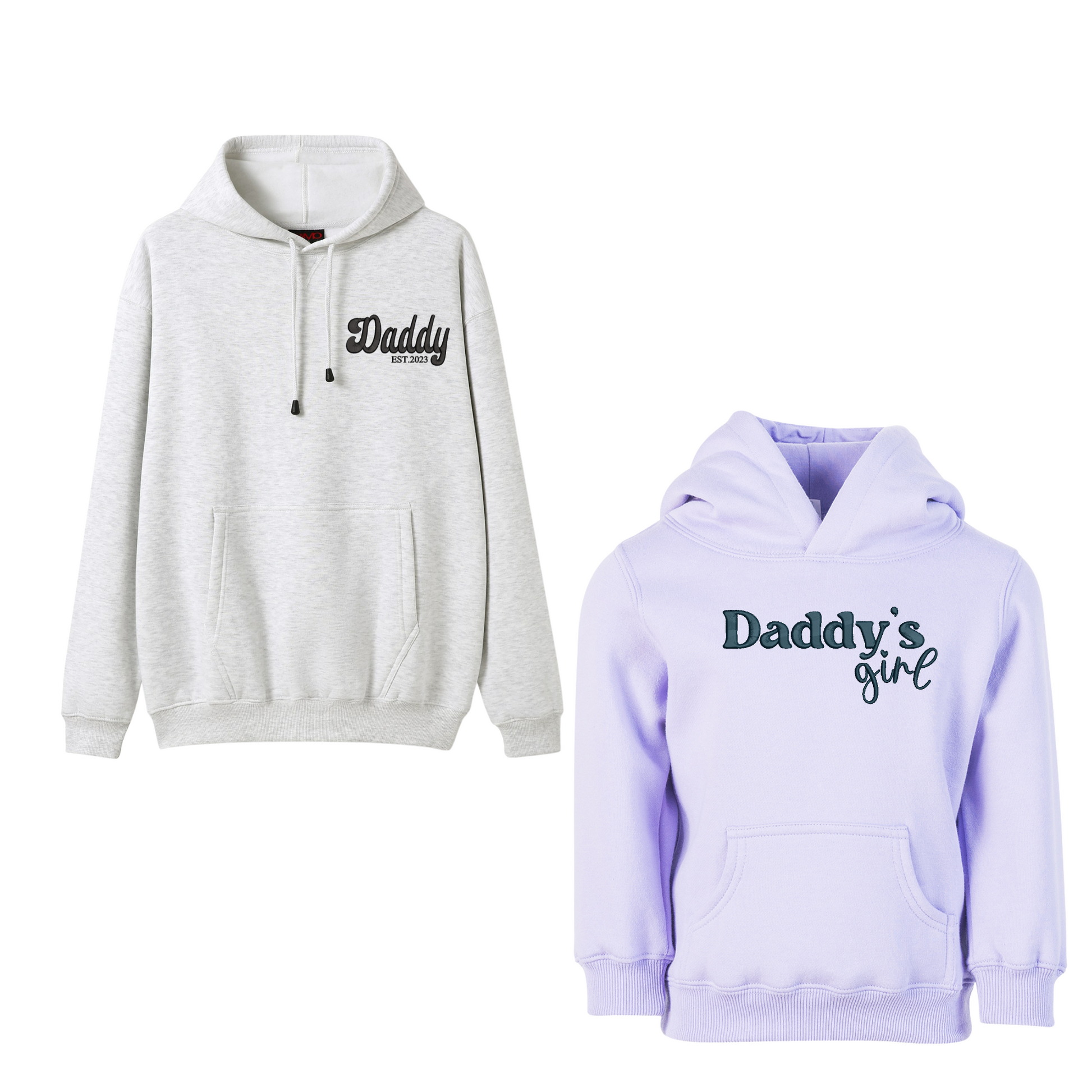 Celebrate the special bond between father and child with our personalised embroidered Dad & Child matching hoodies – the perfect custom gift for Father's Day, birthdays, or just because.
